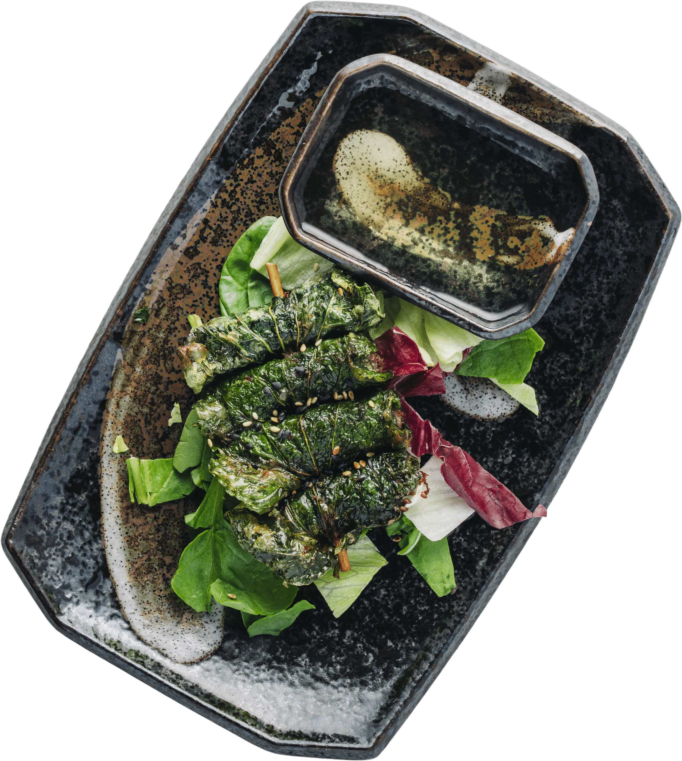Gegrilltes Rindfleisch in Betelblättern, dazu Fisch-Limetten-Knoblauch-Sauce.4
