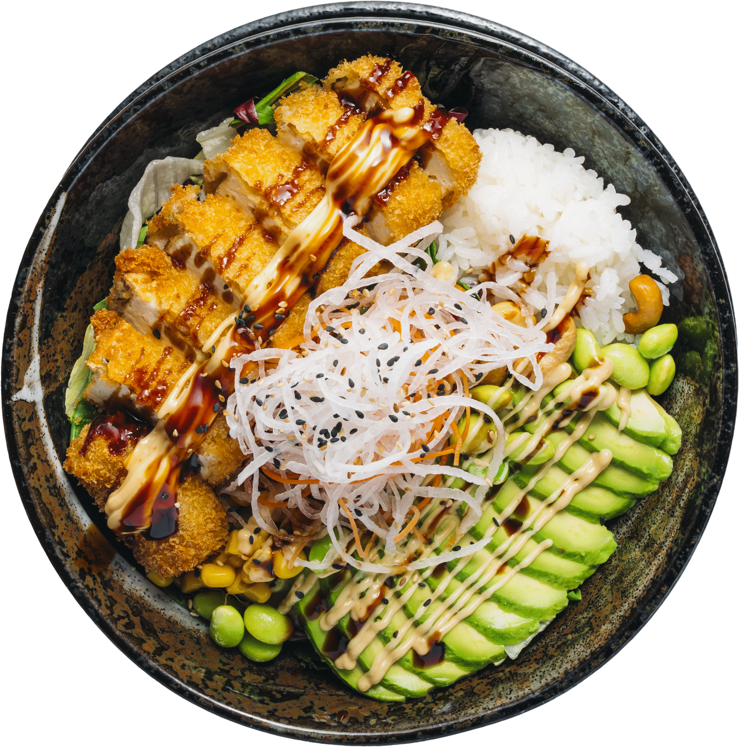 | dazu | A.Knusprige Tofu, B.Hähnchenfleich, C.Lachs, D.Thunfisch |